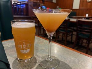 Big Ditch Hayburner IPA ($7.28) and caramel apple cider martini ($11) — a delicious, though quite sweet drink.