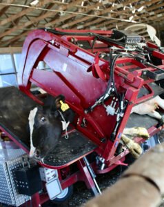 As gently as the machine treats the cows, they’re not all happy with the experience. “Some of the older cows, if they’ve never had an issue going through the chute, if it never hurt them, they never had pain going through the chute, they know what’s coming, they don’t have a problem, they’ll go in and stand there, waiting for me,” Reiff explained. “The ones that have had a problem, they don’t like it so much.”